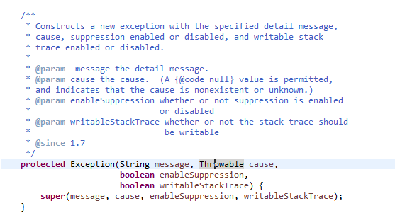 - Exception.java 클래스를 보면 아래와 같은 생성자가 있다.
