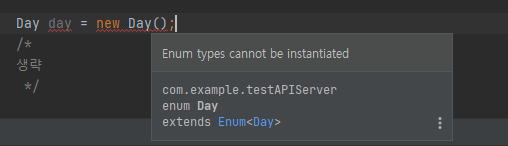 - enum은 인스턴스 생성이 안 됨(상수 본연의 의미를 갖기 위함)