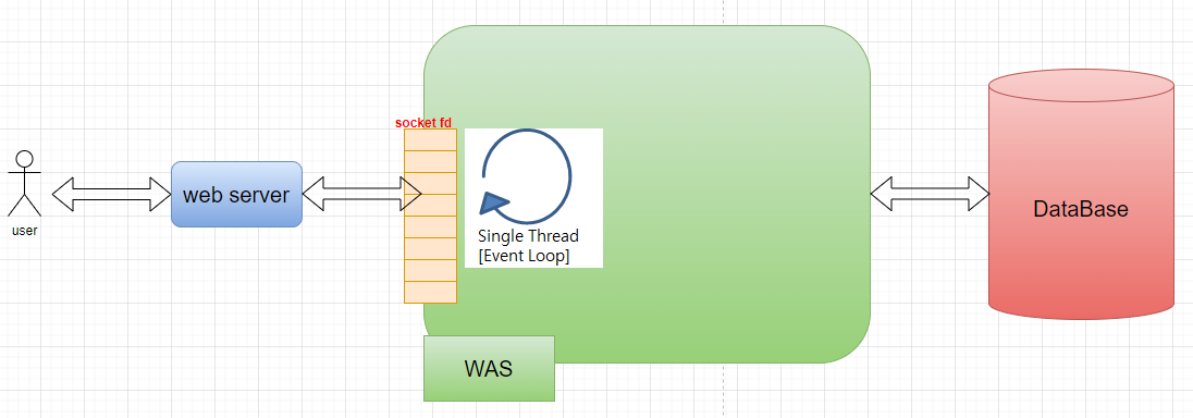 - 하나의 스레드가 multiplexing을 통해 다수의 사용자 요청을 처리한다.