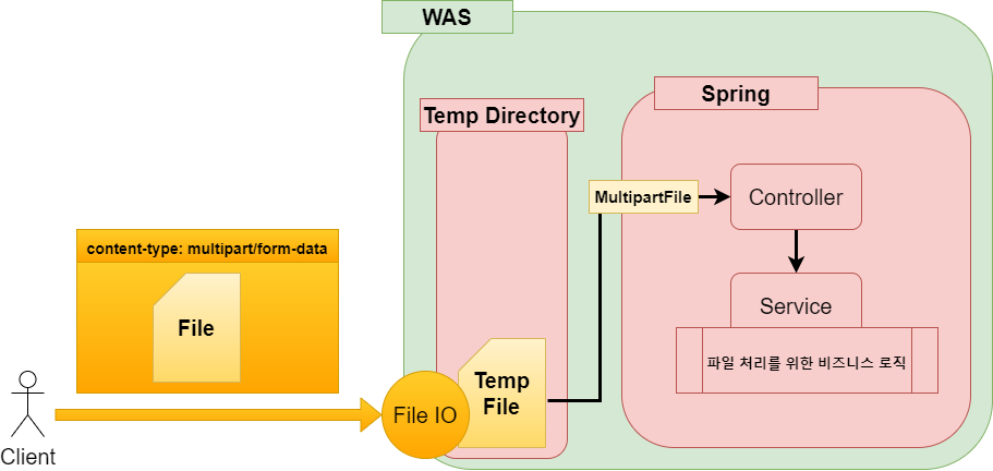 - 대부분의 경우 임시 파일로 수신된 파일을 뒷단의 비즈니스 로직을 통해 한번 더 원하는 경로에 저장하게 된다.