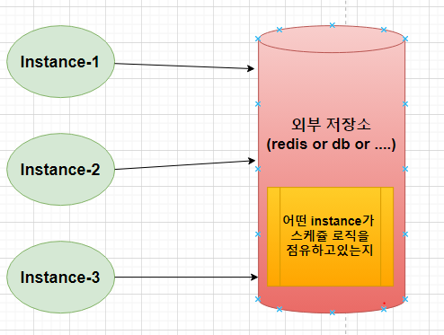 위 그림에서 볼 수 있듯이, 단일 저장소에 어떤 instance 가 스케쥴 로직을 점유하고 있는지에 대한 상태관리를 통해 하나의 인스턴스에서만 스케쥴 로직을 실행할 수 있다.